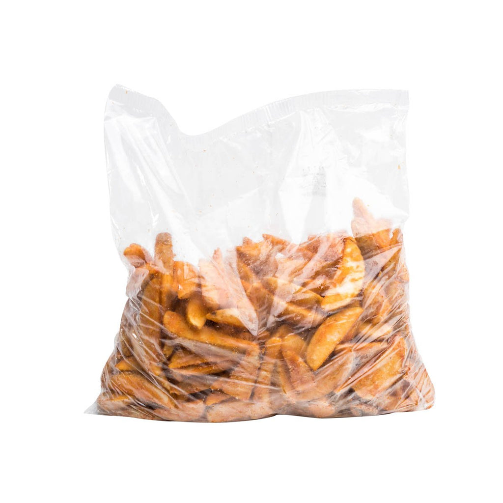 Papas en forma de gajo con cáscara sazonadas, pre-horneadas y congeladas, para una preparación rápida y fácil. Elaboradas con papas 100% naturales con un sabor único para darle un toque especial a tus comidas en casa.